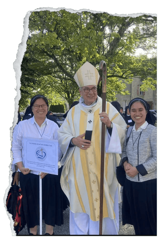Ngày 01/05/2025 vừa qua, cộng đoàn Théophane Vénard đã có một cuộc hành hương “chiêm ngưỡng và thờ lạy” đầy ý nghĩa với các sơ Dòng Unions Chrétiens và một số giáo dân đến Vương Cung Thánh Đường ở Argenteuil, nơi lưu giữ “Sainte Tunique”. Đó là chiếc áo dài của Chúa Giêsu, được dệt từ trên xuống dưới, không có đường khâu, chiếc áo dài Chúa Giêsu đã mặc trên đường thương khó.