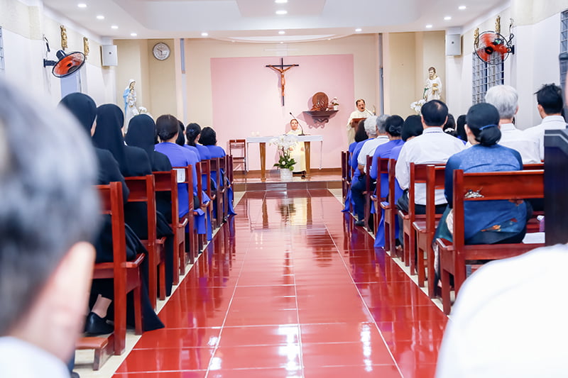 Đó là chia sẻ của Cha Phêrô Nguyễn Trọng Đường, SVD trong Thánh lễ mừng Bổn mạng Têrêsa Avila của Hiệp Hội Tín Hữu Mến Thánh Giá Khiết Tâm (HHTHMTGKT) nhóm An Nhơn, được cử hành vào lúc 17g30, thứ Bảy ngày 14/10/2023, tại Nhà nguyện cộng đoàn Mai Hương. Dịp này có 6 Hội viên Gia nhập, 17 Hội viên Cam kết Tạm và 16 Hội viên Cam kết Tạm lại. Thánh lễ do Cha Chánh xứ An Nhơn – Giuse Vũ Văn Quyên chủ tế. Tham dự Thánh lễ có Chị Phó Tổng Phụ trách – đại diện Chị Tổng Phụ trách, Chị Anna Thân Thị Kim Loan – Đặc trách HHTHMTGKT, các Chị Phụ trách Cộng đoàn miền Sài Gòn, một số chị em trong Hội dòng, các ân nhân, thân nhân, và toàn thể Hội viên HHTHMTGKT nhóm An Nhơn.