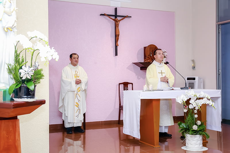 Sau Thánh lễ, mọi người cùng chia sẻ bữa tiệc ấm cúng tại Hội trường của cộng đoàn. Lời nhắn nhủ của Cha Phêrô trong bài giảng vẫn vọng vang: “Chỉ khi ta ở lại trong Chúa thì ta làm cho tình yêu Chúa đẹp hơn và ý nghĩa hơn. Chỉ khi chúng ta ở lại trong Chúa thì chúng ta mới có thể làm sáng danh chúa ở trong môi trường cuộc sống của chúng ta. Chỉ khi ở lại trong Chúa ta mới đón nhận sự khác biệt của nhau. Và chỉ khi ở lại trong Chúa, ta mới sinh ra hoa trái của Thánh Thần cho Giáo Hội.”