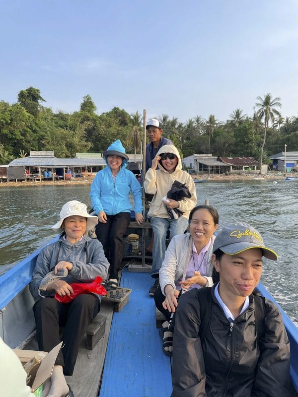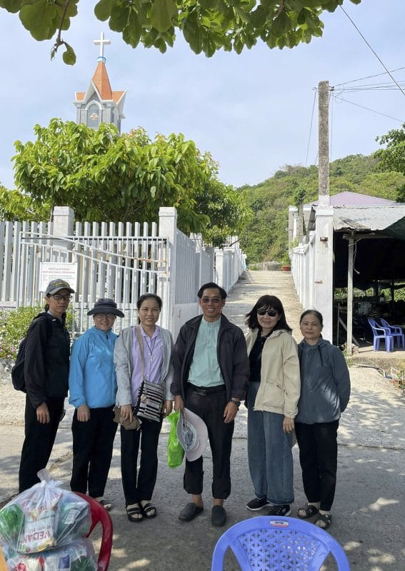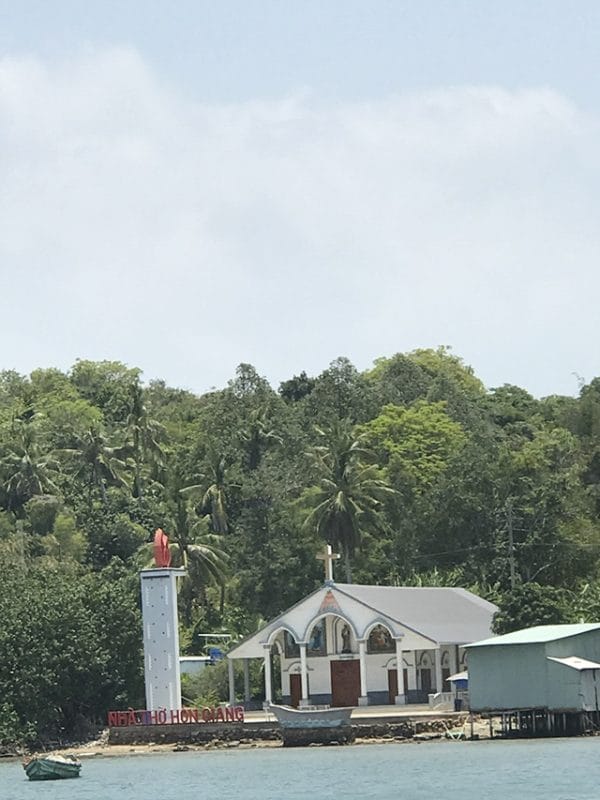 Kế đó, chúng con di chuyển qua Hòn Đước. Ngồi trên chiếc vỏ chòng chành giữa mênh mông biển xanh sóng nước, con nghĩ đến các tông đồ ngày xưa cũng từng lênh đênh theo Thầy, có những lúc gặp sóng gió xin Thầy giơ tay cứu vớt, nâng đỡ niềm tin; và hôm nay, chính con cũng đang lên đường – mang tình thương Chúa đến cho những người nghèo khó nơi tận cùng hải đảo.