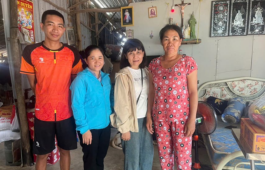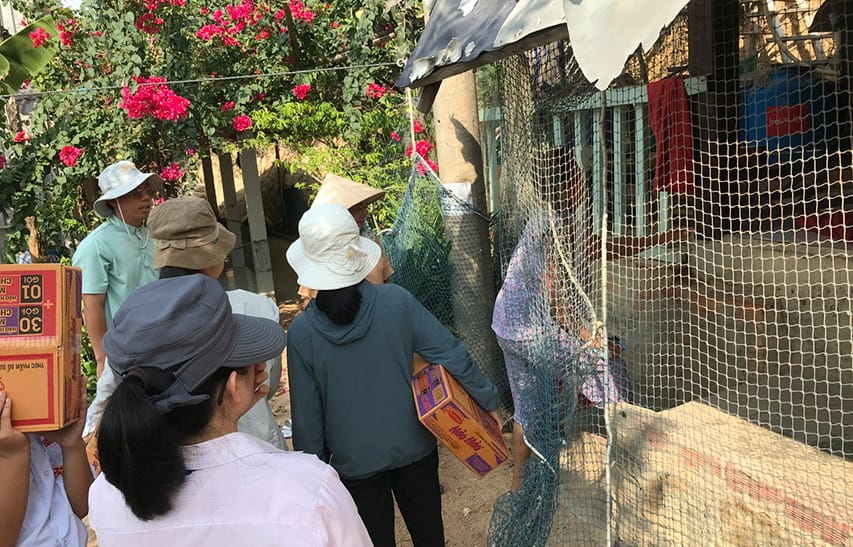 Chúng con được Cha Quản sở ra đón tận bến tàu và giúp chở các phần quà về tận Nhà Thờ. Sau ít phút nghỉ ngơi sau chặng đường khá dài, chúng con được Cha đồng hành đến thăm các cụ già neo đơn, các em nhỏ có hoàn cảnh khó khăn, để tận tay trao gửi yêu thương. Mỗi nhà mỗi cảnh, khiến con không khỏi xót xa.
